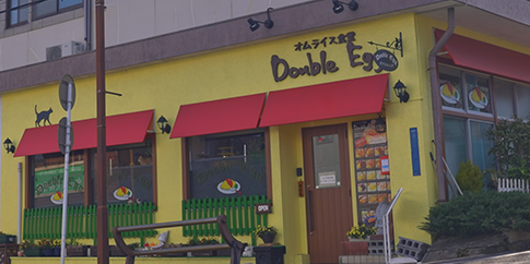 ダブルエッグはテイクアウト・デリバリー専門の店舗とイートイン専用の店舗に別れております。両店舗は、道路を挟んで斜め向かいのすぐ近くに位置しています。南東側にあるイートイン専用のダブルエッグ4丁目店には無料駐車場もございますので、どうぞお気軽にお越しください。
