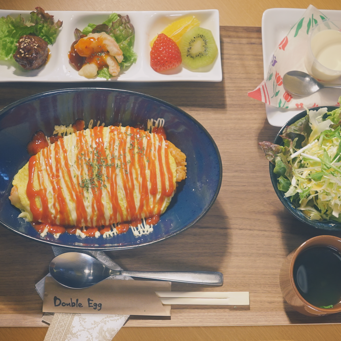 蔵王の大自然で活気にあふれ、元気に育った新鮮な卵から生まれるダブルエッグのオムライスをお楽しみください。新鮮な卵だけで作られるオムレツは、ふわふわしたとろけるような食感です。食材にこだわるダブルエッグだからこそ、「豊かな自然が生み出す美味しさ」を大切にしていきます。
