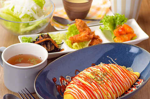 選べるオムライスに、サラダ・スープ・日替わりおかず・デザート・コーヒーがついたお得なセットです。約20種類もの中からお好きなオムライスを選べます。メンズの方も是非ご賞味ください。
